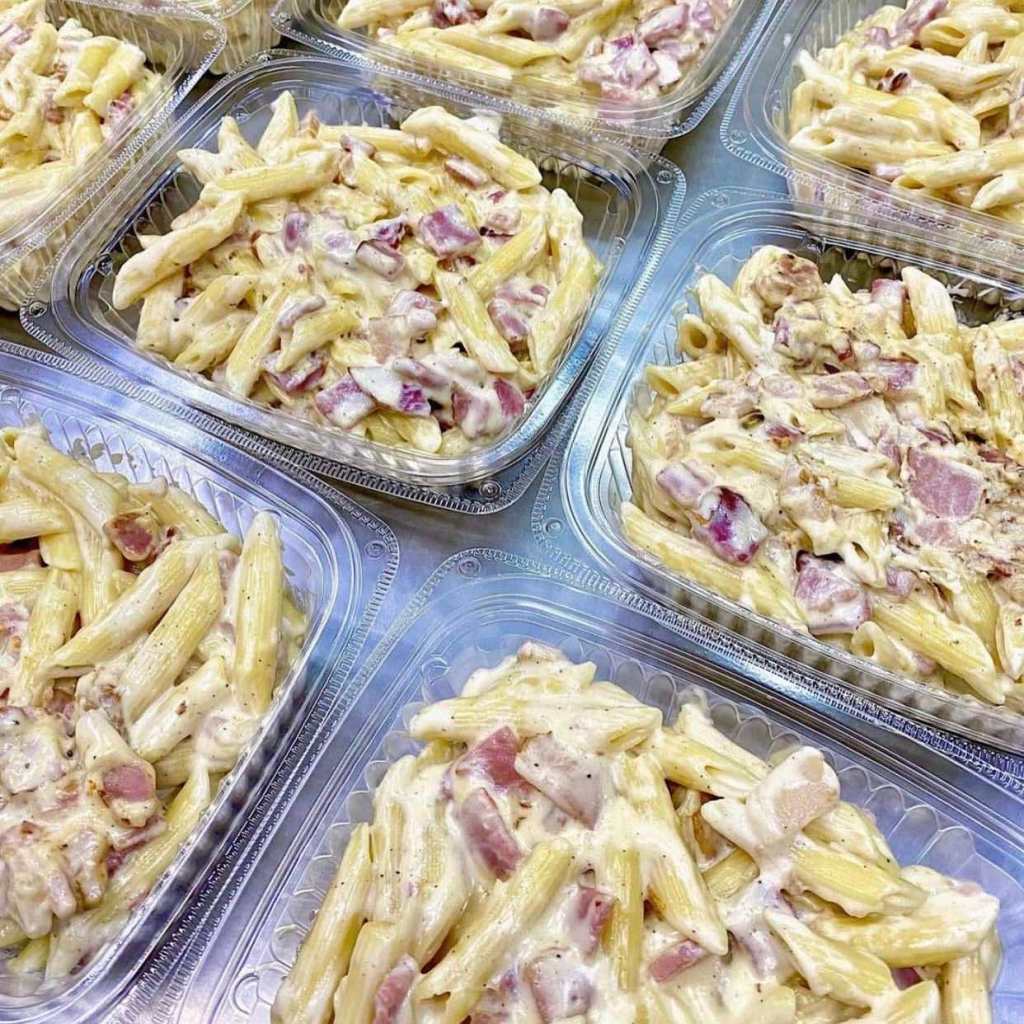 Home-cooked three (3) cheese carbonara w/ honey ham.